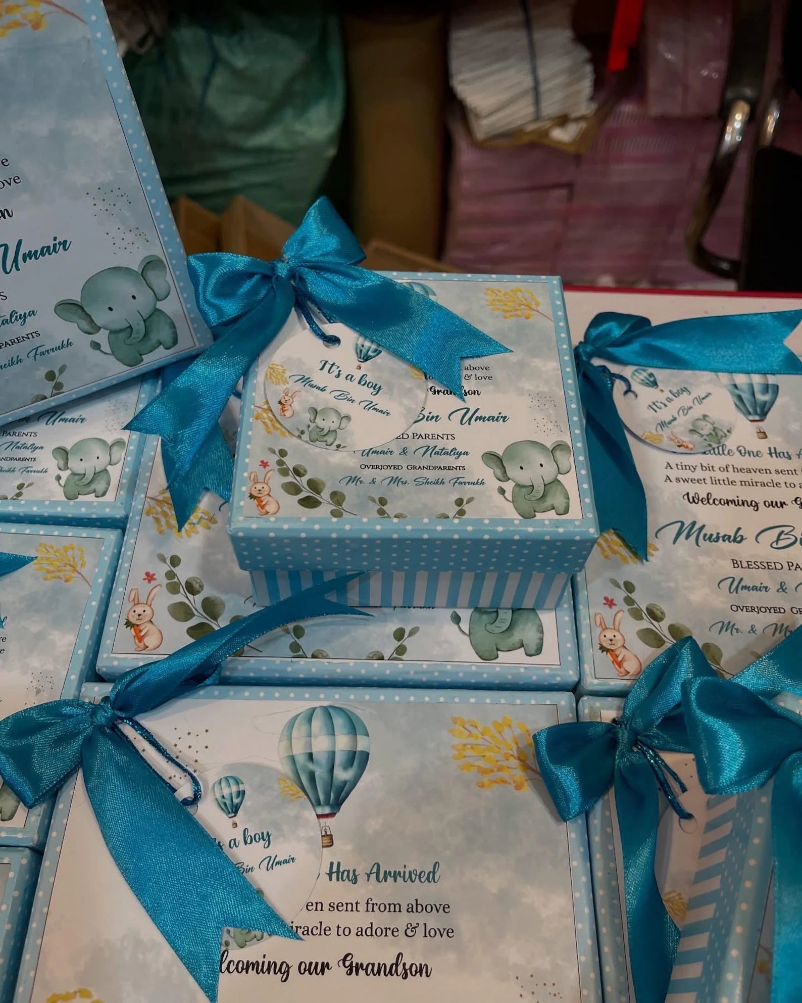 Welcome your baby boy with our Little Prince Announcement Box, a charming pastel blue box made from high-quality cardboard with a refined finish. Ideal for baby showers, newborn celebrations, or aqeeqah events, it’s designed to hold keepsakes, tokens, or favors beautifully.